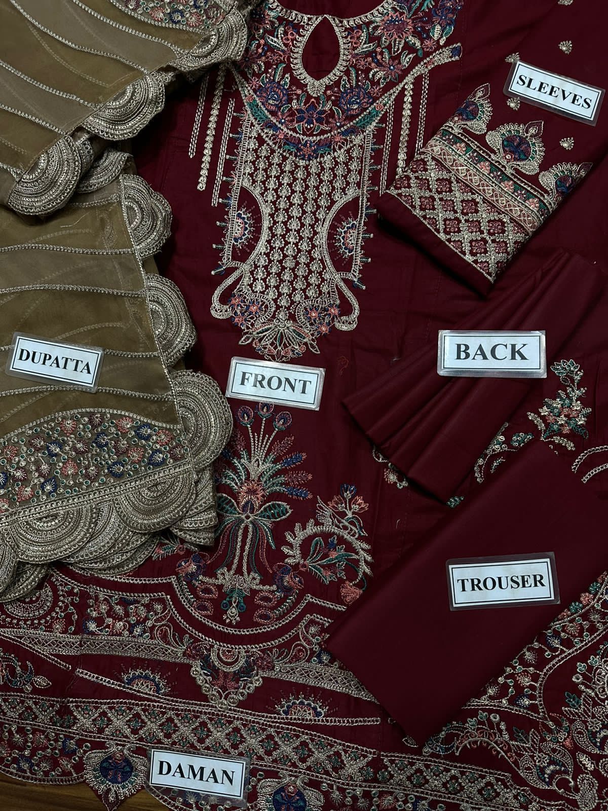 Turn heads this season with the elegance and charm of our JAZMIN Unstitched Replica Suit, a perfect blend of breathable lawn cotton and sheer organza. This design reflects the signature sophistication of the JAZMIN brand—crafted for the woman who knows how to blend grace with glamour.