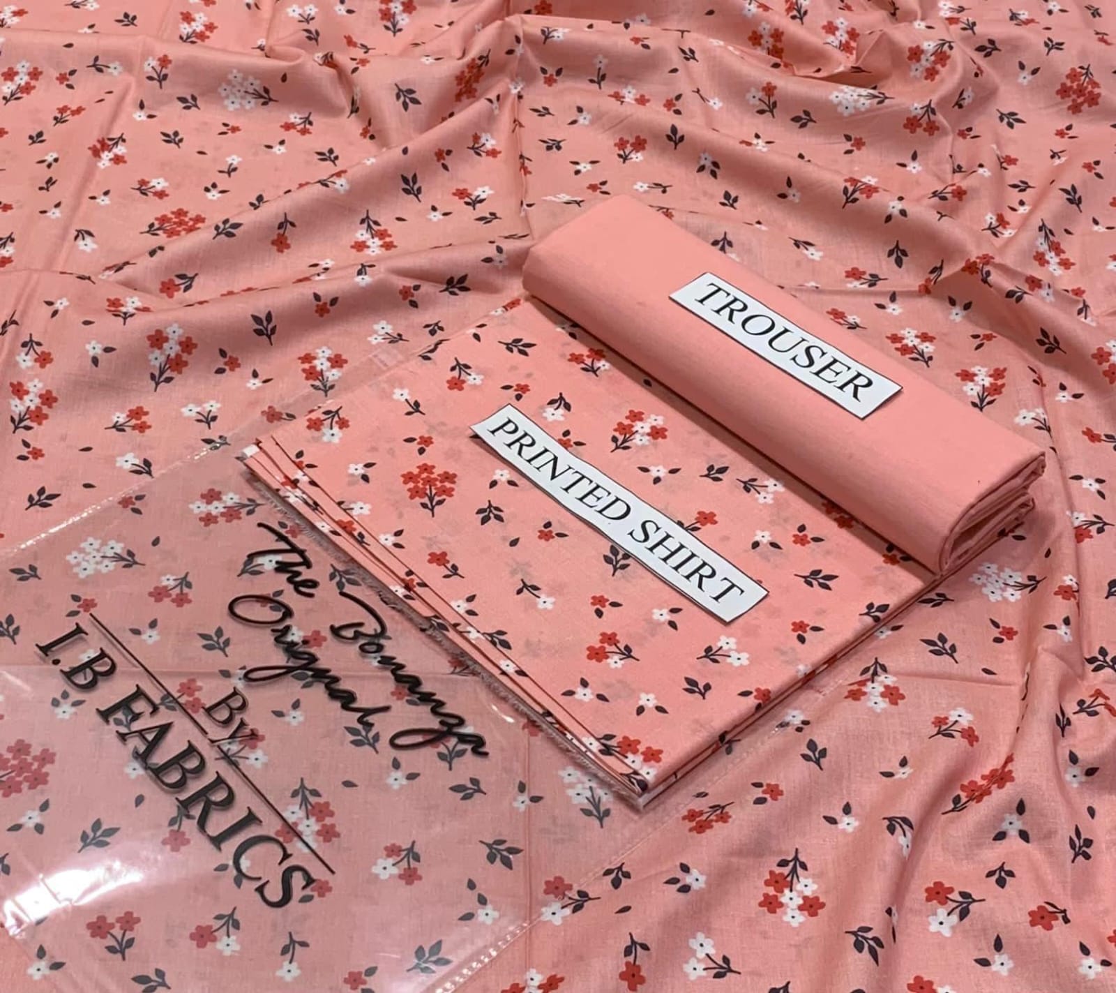 🌿 I.B Fabrics – Lawn Bonanza 2PC Suit (Printed Shirt + Plain Trouser)