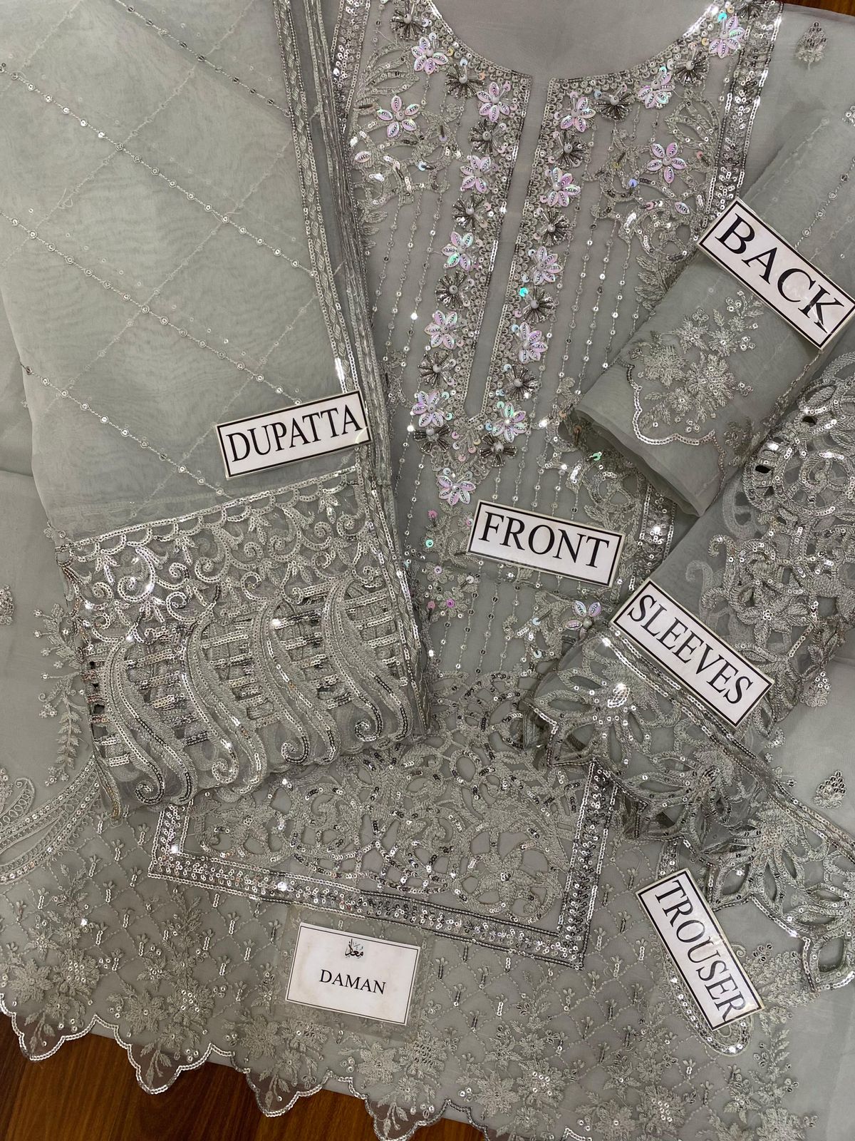Heavy embroided organza front with complete adda work and cutwork