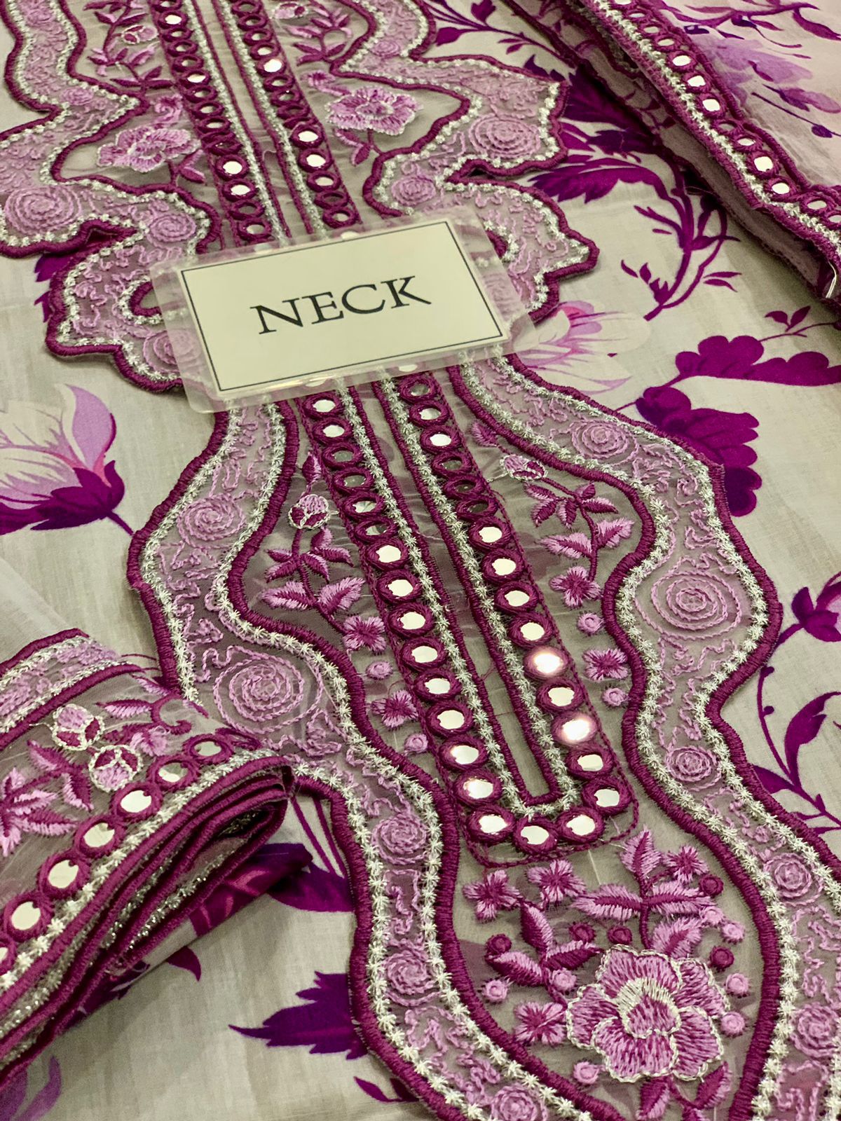 •Printed Chiffon Dupatta with 4 side embroidered 9mm sitara lace