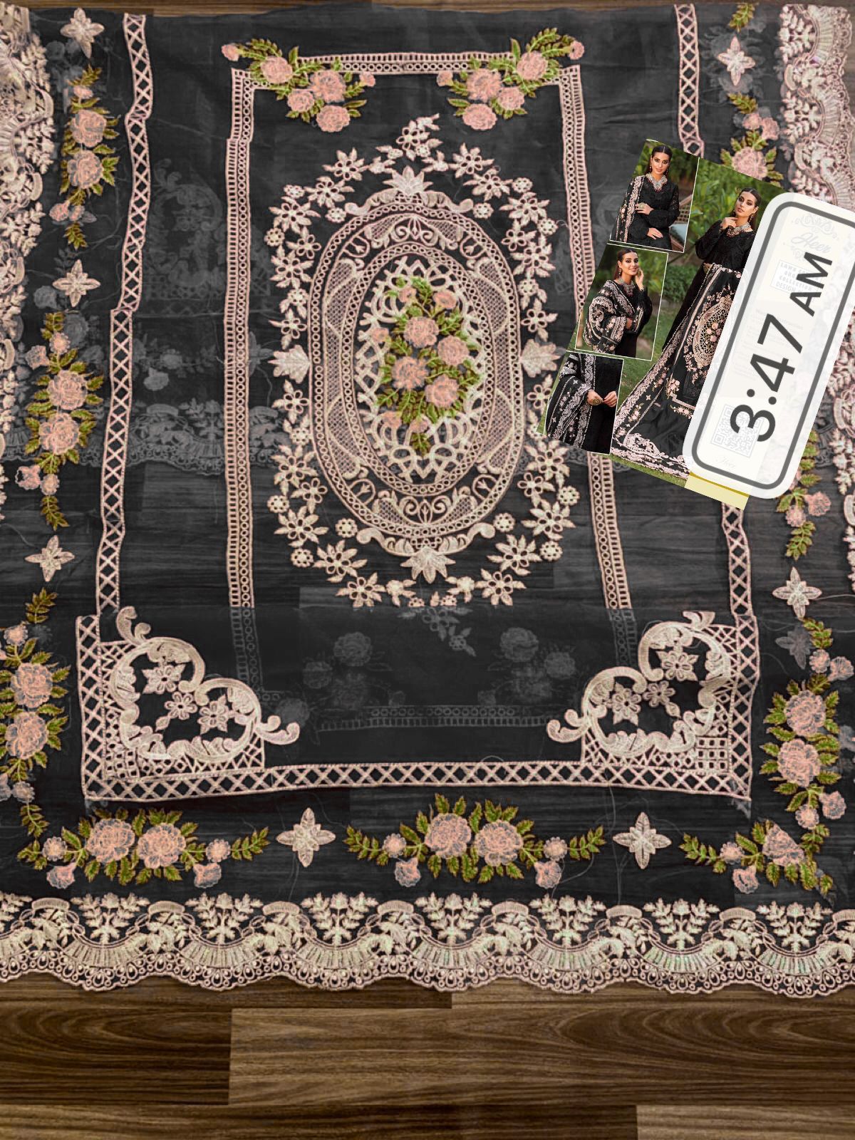 - Dupatta: Organza dupatta with 4-side heavy sequins embroidered chikankari cutwork borders