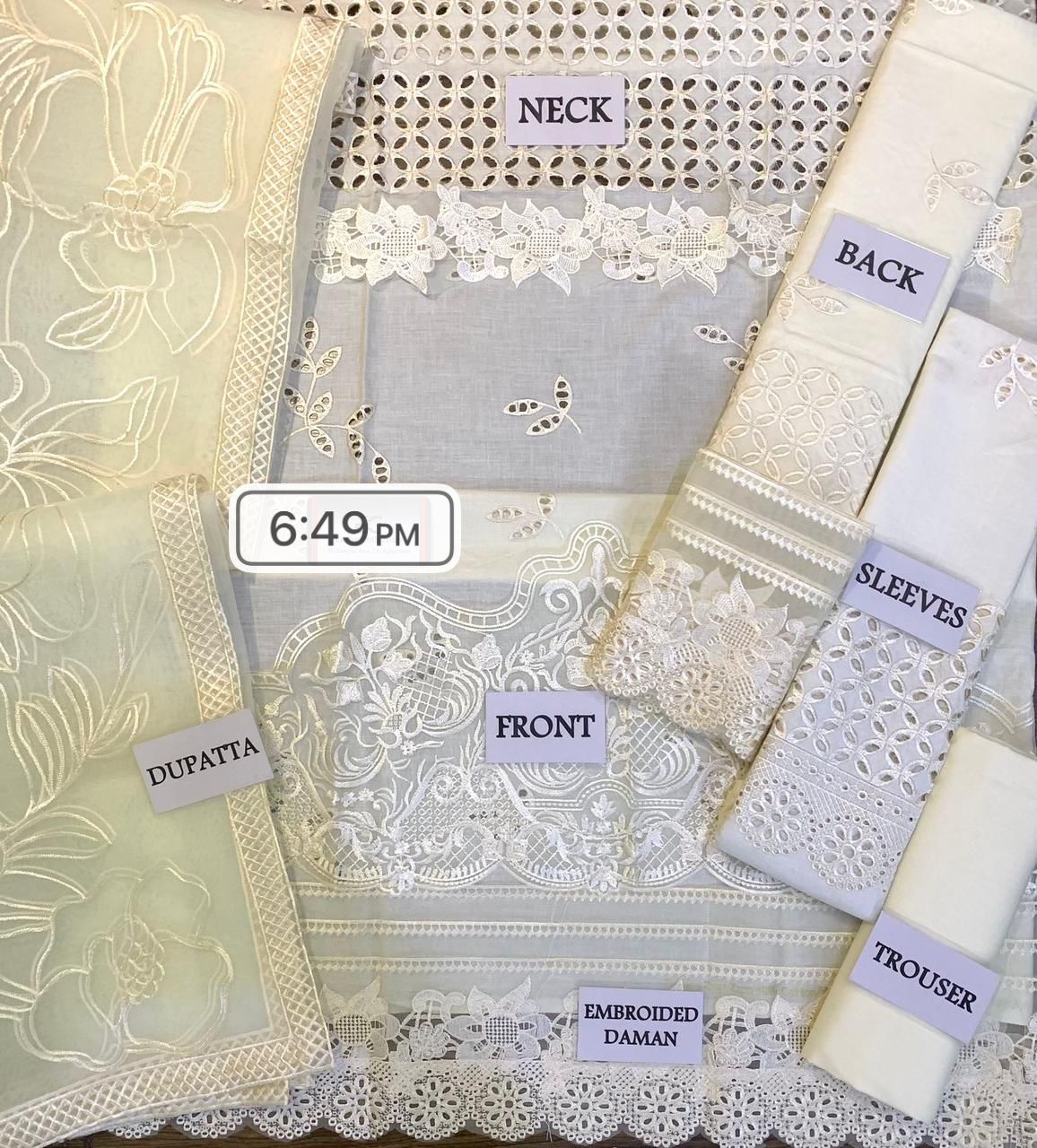 Step into timeless elegance with Valentina Creme-24 from the house of MUSHQ. This premium unstitched ensemble blends traditional chikankari artistry with contemporary luxury, creating a look that is both regal and refined β perfect for weddings, festive gatherings, and Eid celebrations.